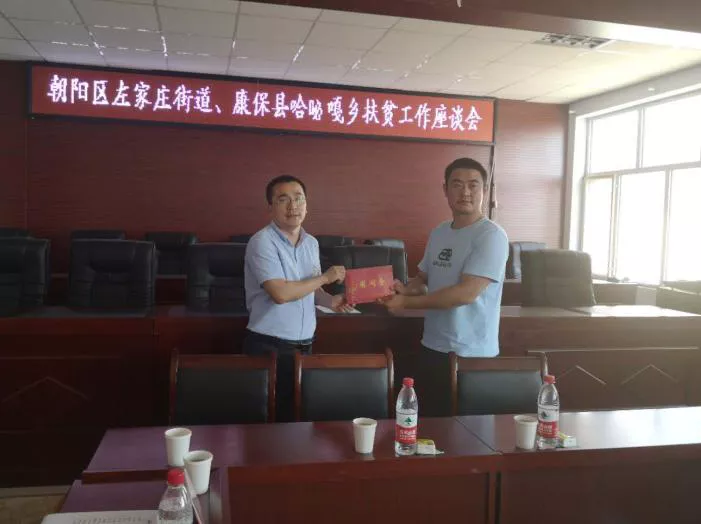 德元人力黨支部書記田志(左一)向康??h哈咇嘎鄉(xiāng)捐款10000元